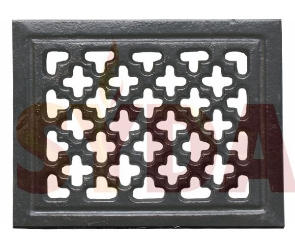 Kratka odlana z żeliwa malowana czarną żaroodporną farbą.