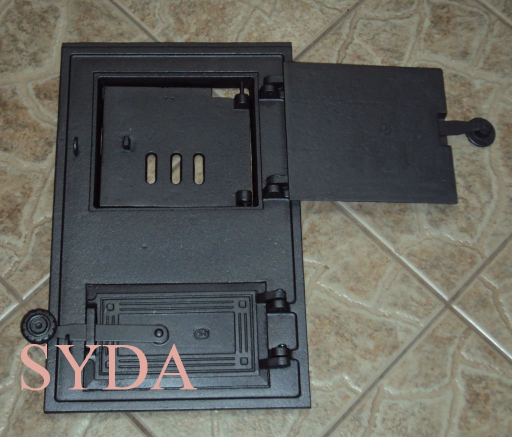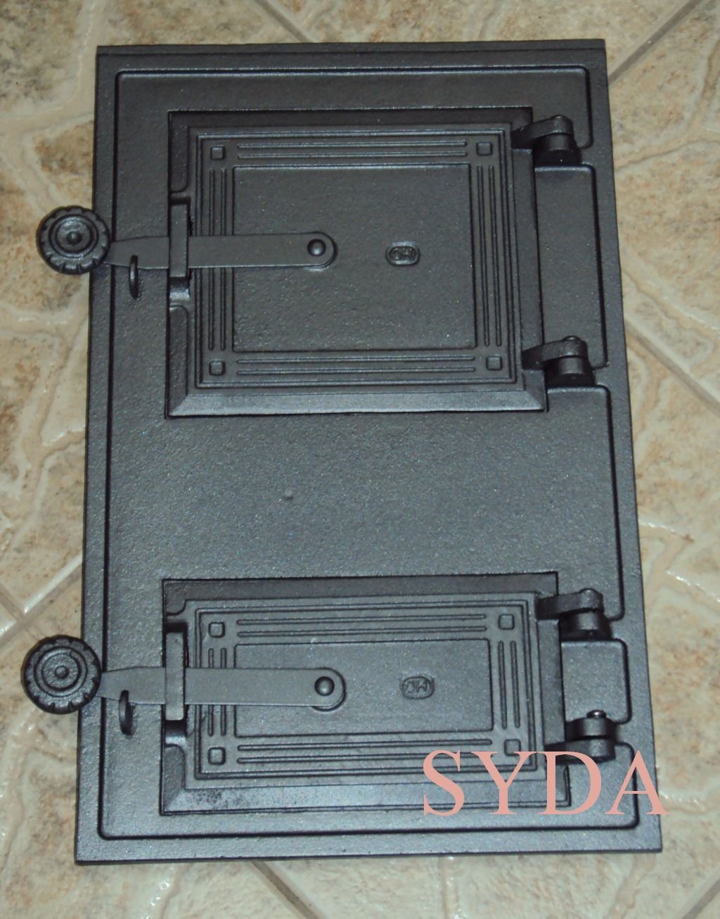 Drzwiczki kuchenne z wkładką ogniową malowane grafitową żaroodporną farbą.