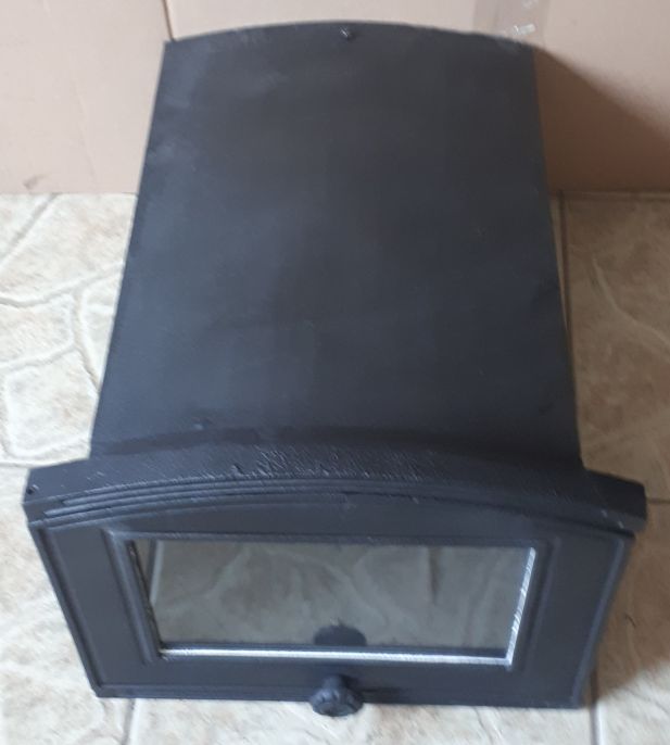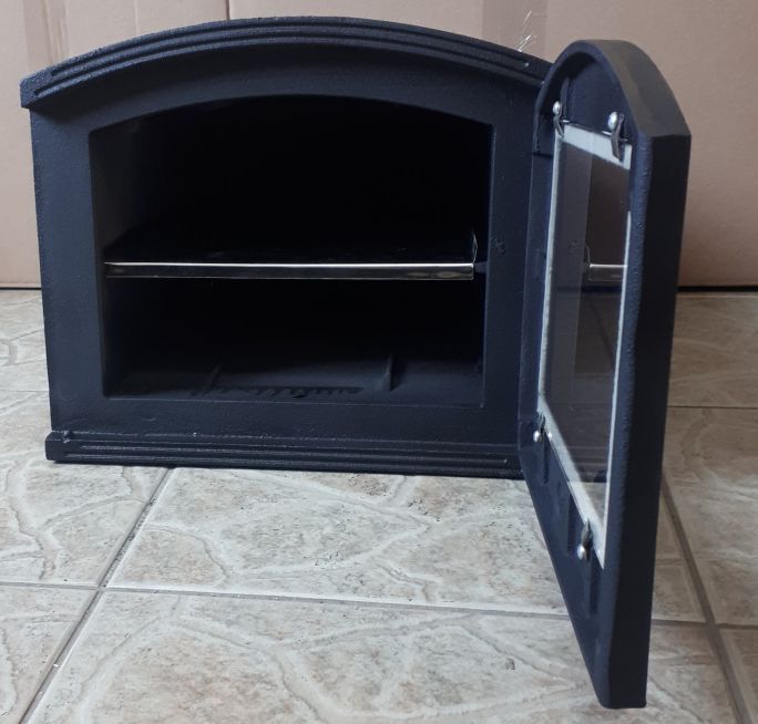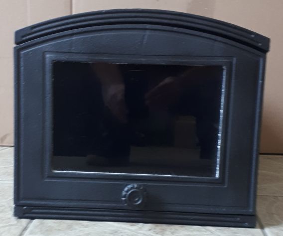 Piekarnik żeliwny przeszklony z czarnym frontem,otwierany do boku zawias z prawej strony.