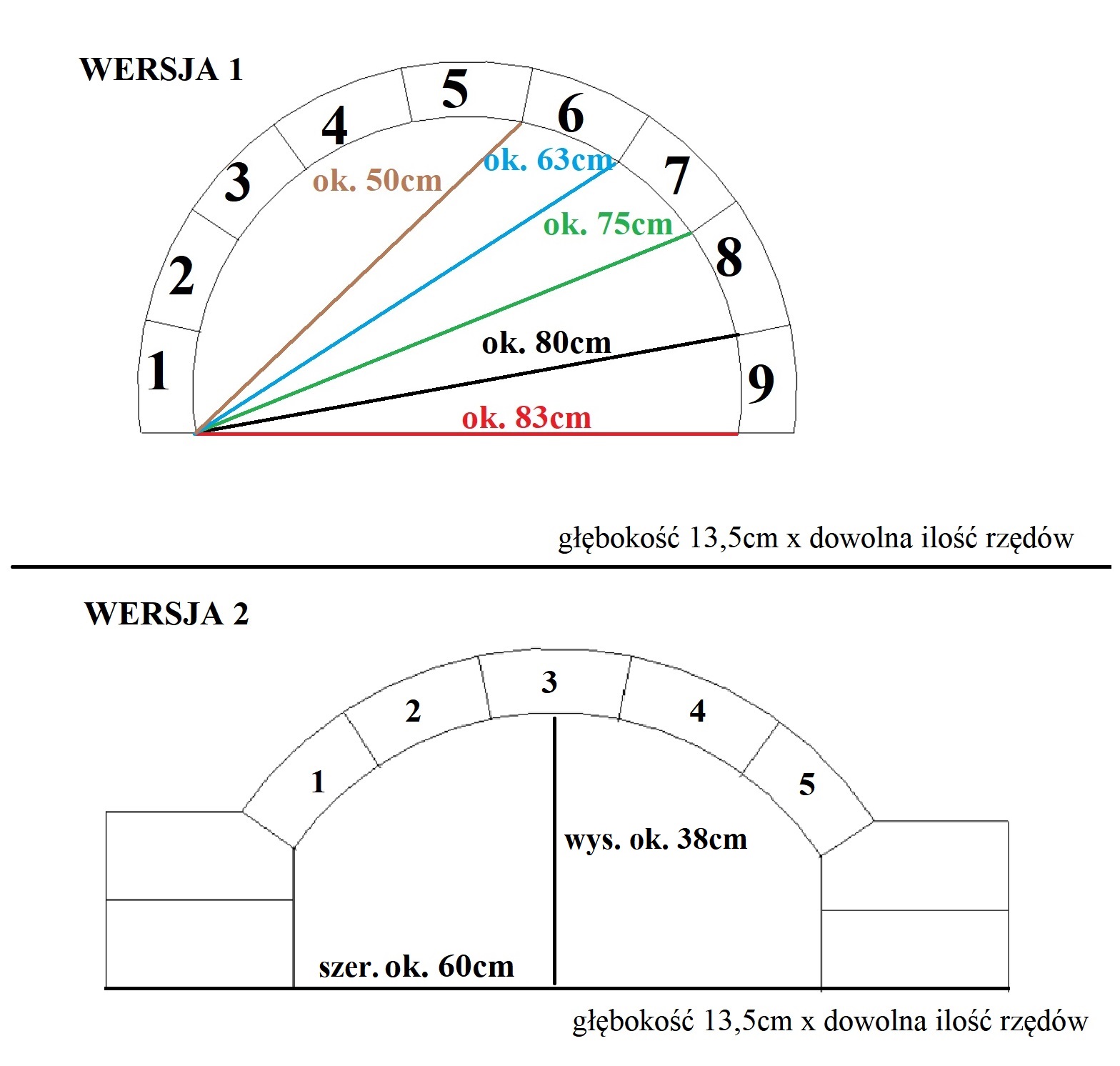 Łuk jest tak wyprofilowany by przycinając pierwszą kształtkę pod odpowiednim kątem można było osiągnąć różny promień. Na zdjęciach propozycje montażu pieców.
