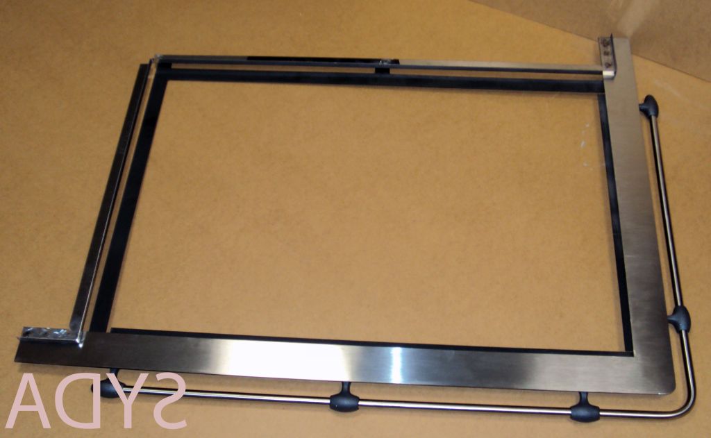 Rama kuchenna narożna lewa „3” z kątownikiem z stali nierdzewnej. Rama wykonana jest z stali nierdzewnej kwasoodpornej o grubości 4mm. Szerokość pasków stali nierdzewnej to 6,5cm. Od spodu dospawany jest kątownik opasający kuchnie. Rama dopasowana do trzech stalowych blach kuchennych o wymiarach 630 – 315 ≠ 8 mm. Rama posiada reling z stali nierdzewnej z żeliwnymi gałkami.