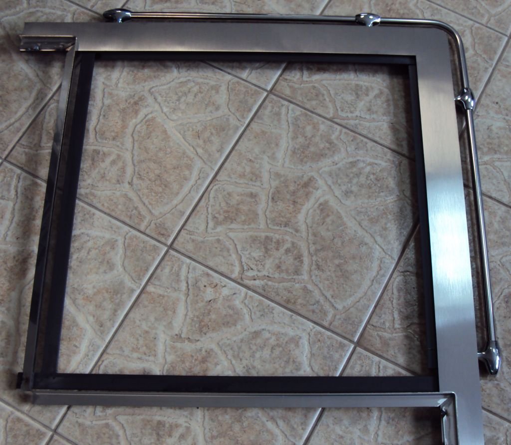 Rama kuchenna narożna z gałkami niklowanymi i relingiem z stali nierdzewnej kwasoodpornej, z kątownikiem nad ramą. Rama wykonana z stali nierdzewnej kwasoodpornej o szerokości 65mm i grubości 4mm.